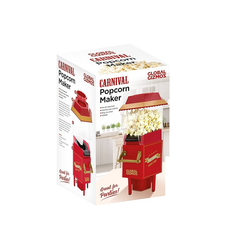 Transform kernels into fluffy, delicious popcorn in minutes with the Fairground Popcorn Maker. Its compact and portable design allows for easy storage, while its oil-free operation provides a healthier snack option. Perfect for movie nights, parties, and everyday snacking, this popcorn maker is a must-have appliance for any popcorn lover.