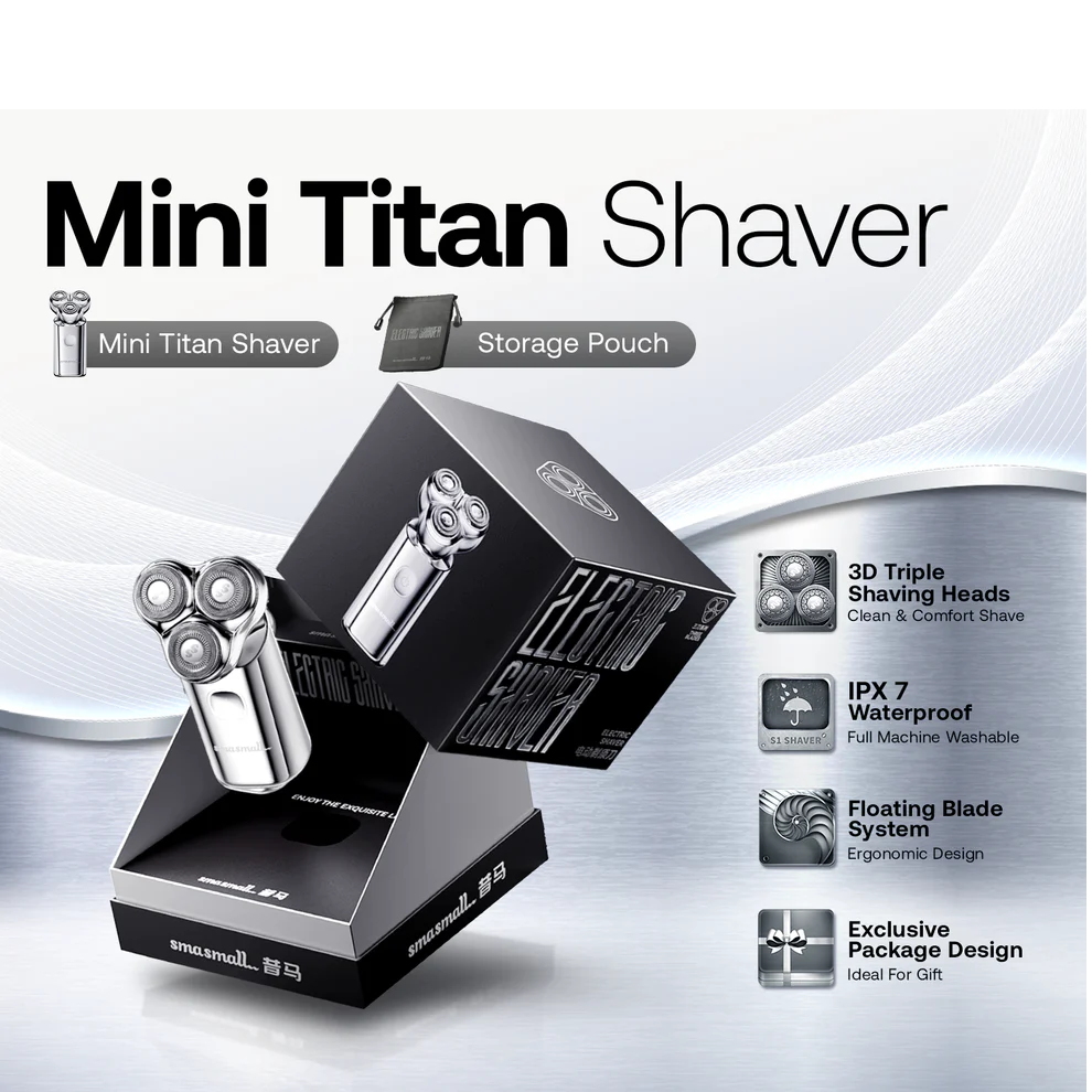 Experience the luxury of a close and comfortable shave with the MINI TITAN S3 Shaver in sleek grey. Its ergonomic design ensures easy handling, making every shave a breeze. Say goodbye to nicks and cuts with this high-quality shaver.