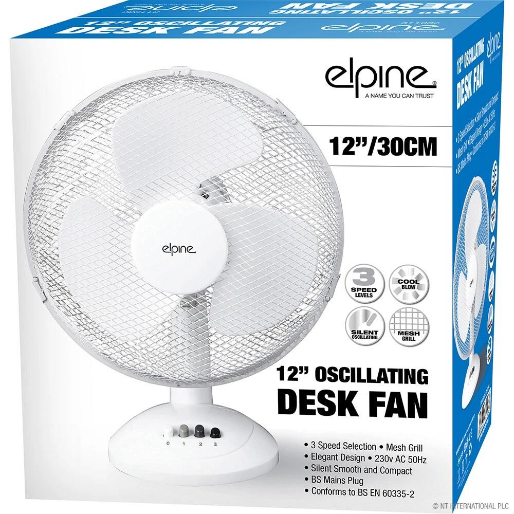 - 12″ Oscillating Desk Fan