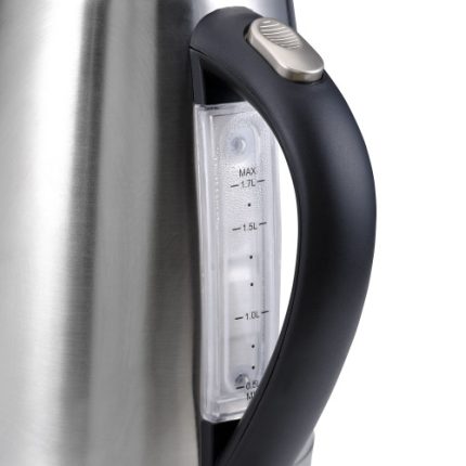 - Other Features: Auto shut-off when water boils, filter included, boil-dry protection, safety locking lid, water level indicator, 360° cordless rotating base