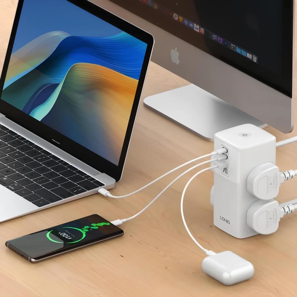 - Supports charging of up to 4 devices simultaneously with a maximum total output of 100W