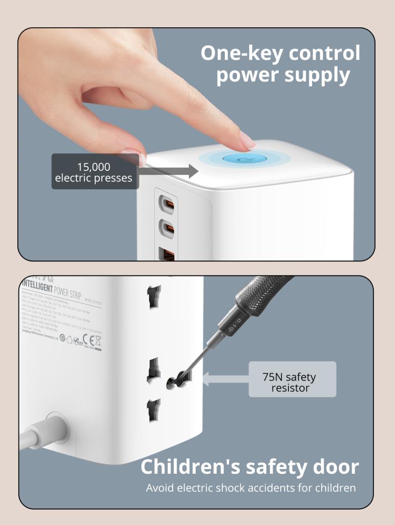 - Made with high-quality, flame-resistant materials and featuring four safety protection systems, including over-current protection, over-voltage protection, short circuit protection, and over-temperatu