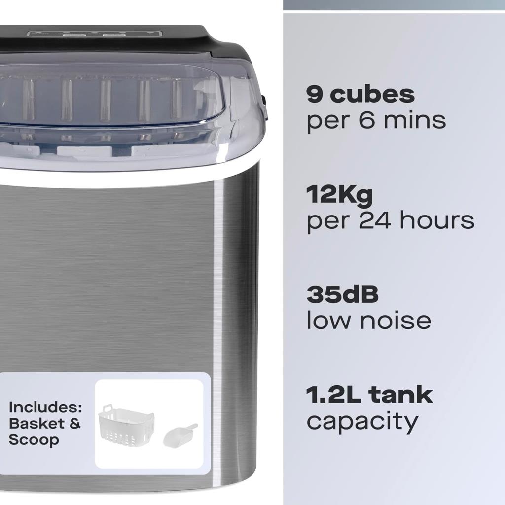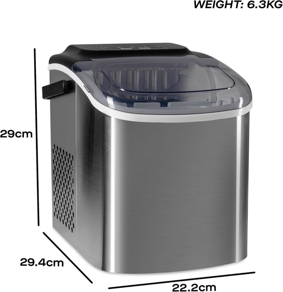Never run out of ice again with the 970029 Quick Ice Maker! This efficient and portable ice maker can produce 12kg of ice in just minutes, making it perfect for parties, events, or everyday use. Its compact design makes it easy to place on any countertop, while its stainless steel construction ensures durability. Say goodbye to waiting for ice trays to freeze and hello to a constant supply of ice with the Quick Ice Maker.