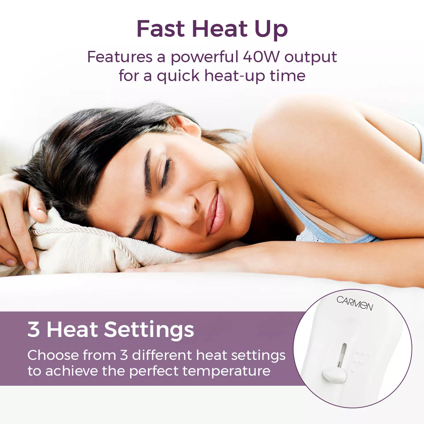 - Choose from multiple heat settings for personalized comfort.