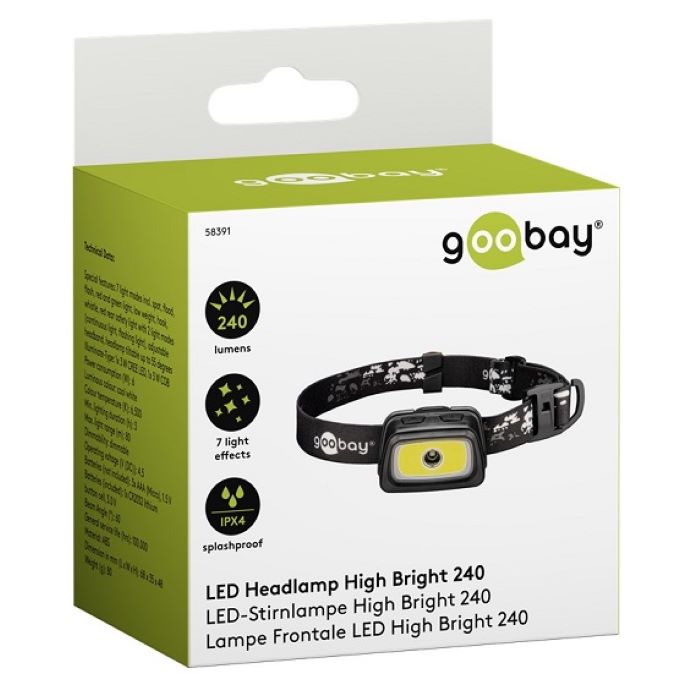 Goobay LED headlamp High Bright 240, black, (IPX4), 240 lm