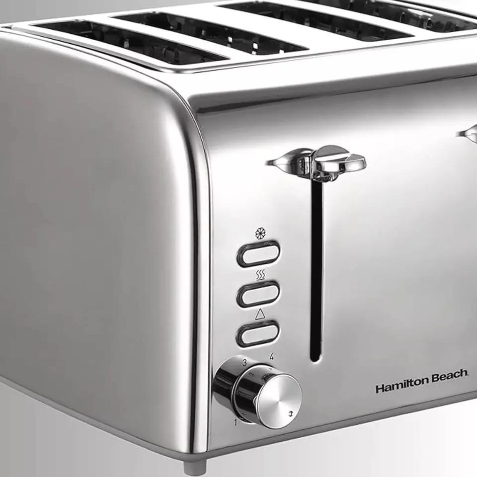 Start your day off right with the Hamilton Beach Rise 4 Slice Toaster. With features like extra wide slots, easy cleaning, and a toast boost function, this toaster will make your morning routine a breeze. Say goodbye to burnt toast and uneven browning with the cancel button and auto shutoff feature. Upgrade your breakfast game with the Hamilton Beach Rise 4 Slice Toaster.