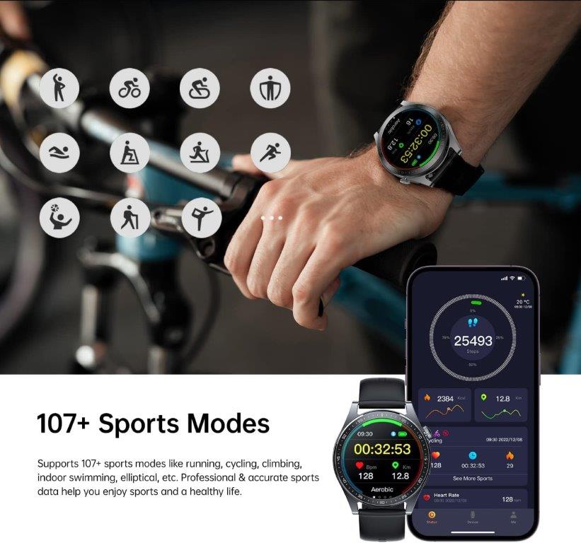 - Track your fitness and health goals with heart rate monitoring and step counting