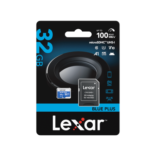 LEXAR 32GB Blue Plus microSDHC UHS I inc SD adapter 100MB/s