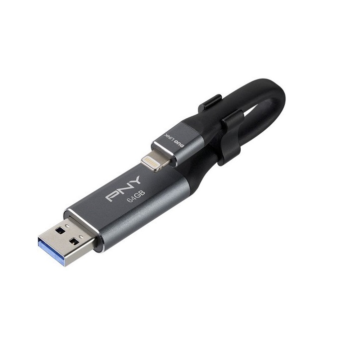 - Instantly expand your device’s storage capacity by 64gb with the PNY Duo Link On The Go Flash Drive.
