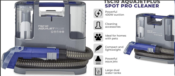 Experience the convenience and power of the T548005 TOWER TSC10 AQUAJETPLUS spot cleaner and upholstery cleaner. Say goodbye to stubborn stains and hello to spotless carpets and furniture with this efficient cleaning solution.