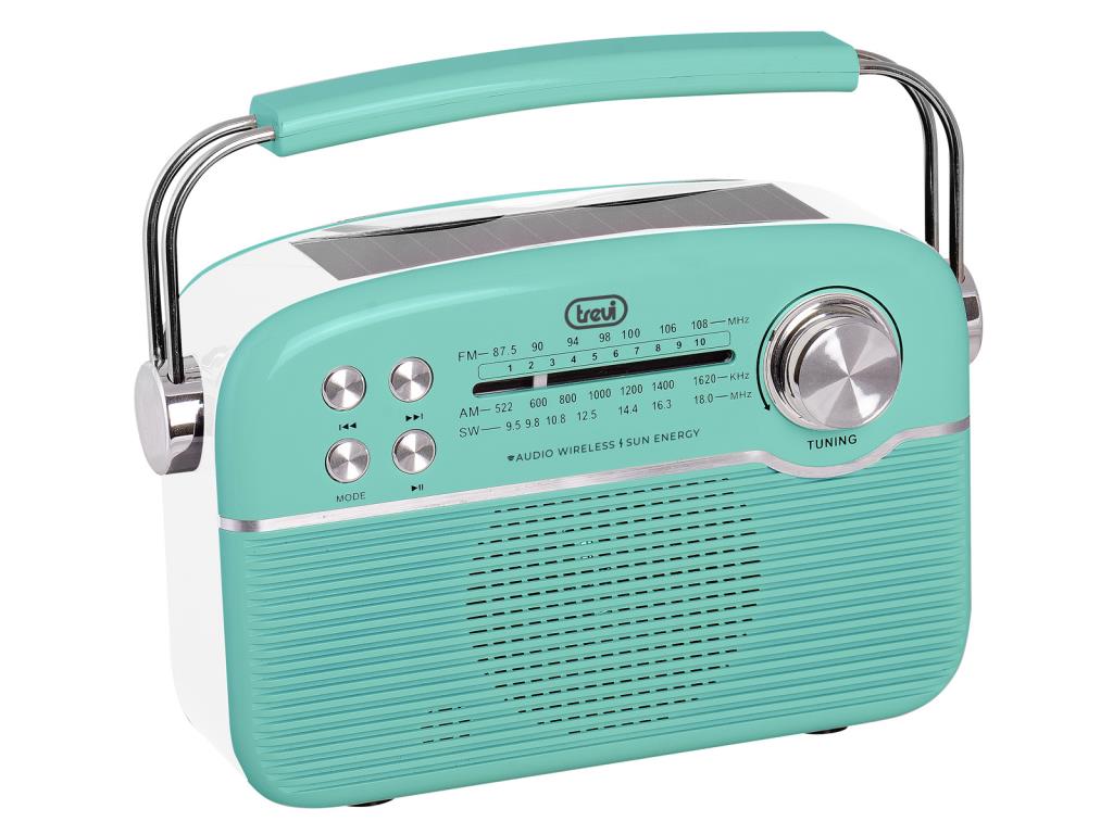 - Enjoy your favorite music in style with the Trevi Retro BT Solar Portable Radio.