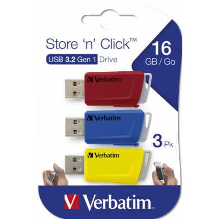 VERBATIM USB DRIVE 3.2 STORE ´N´ CLICK 3 X 16GB RD/BL/YL