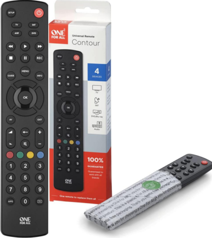 - Get rid of multiple remotes cluttering your living room with the One for All 4 in 1 Remote Control for TV. Streamline your entertainment system and enjoy the convenience of controlling all your devices with just one remote. Say goodbye to the hassle of switching between remotes and simplify your TV-watching experience.